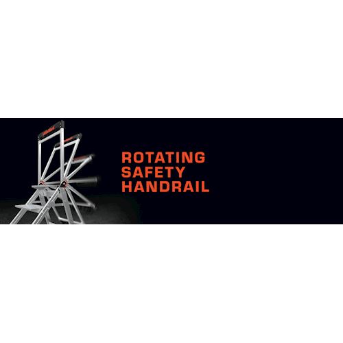 The Jumbo Step has a rotating safety handrail for added stability. This feature helps step stool users to feel more secure and confident while working at heights.