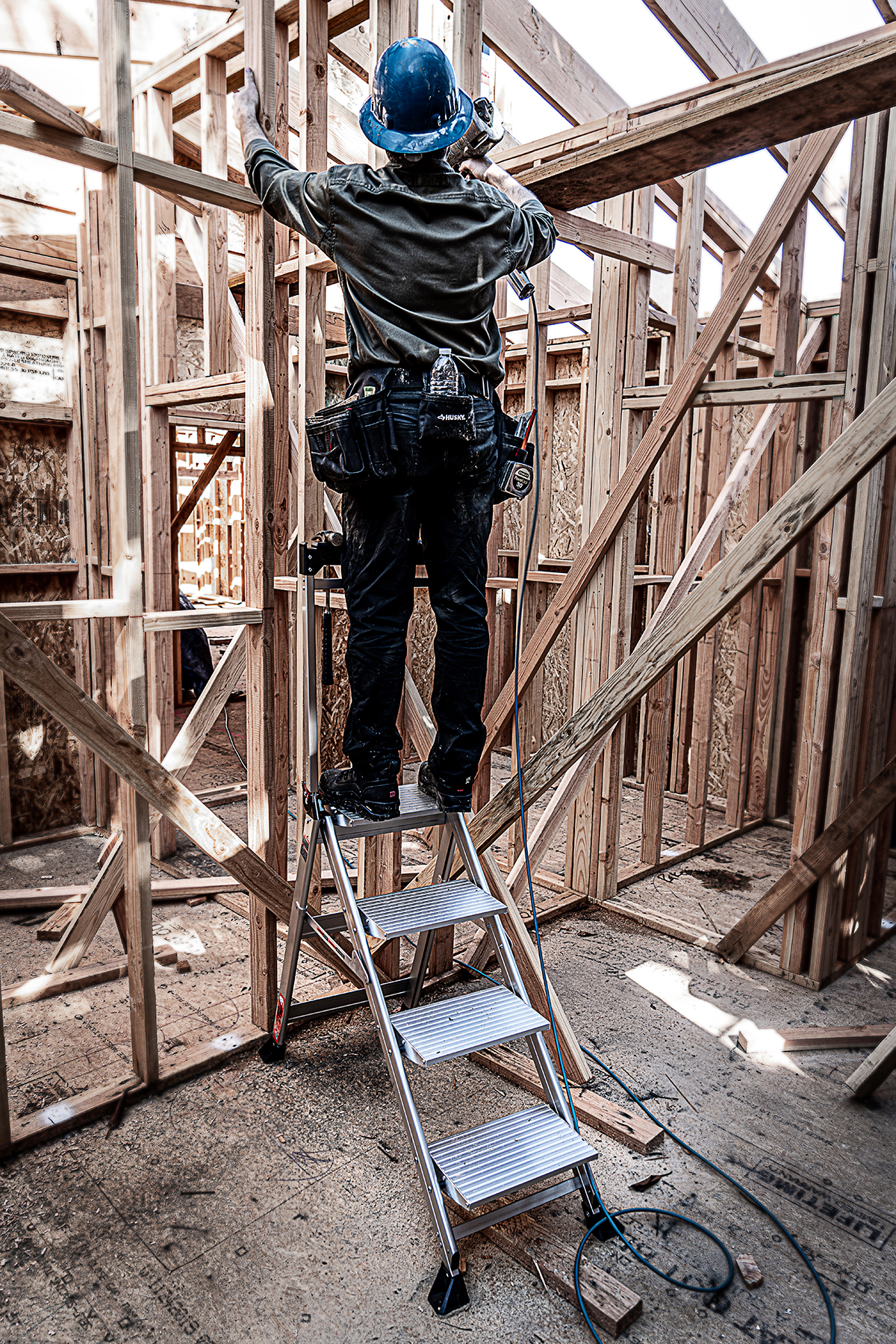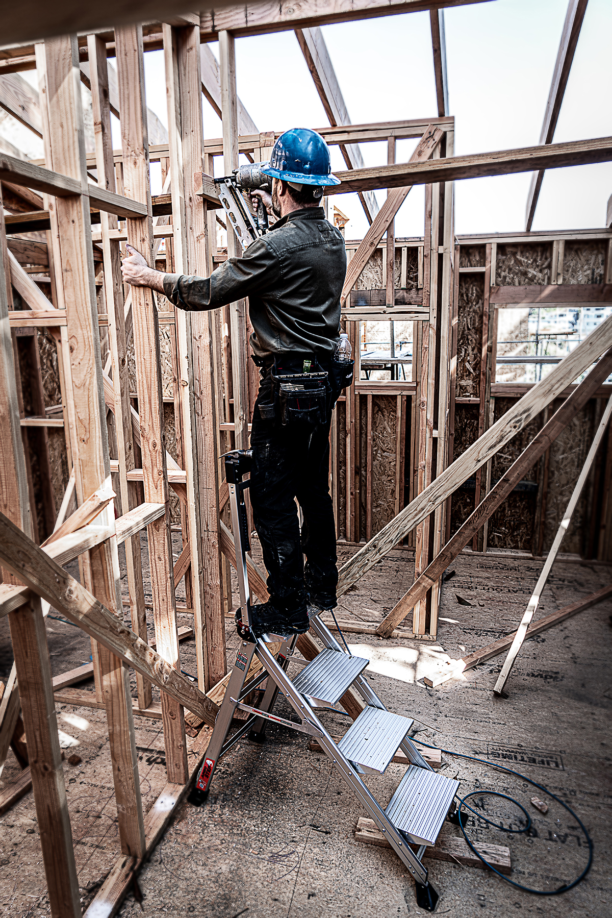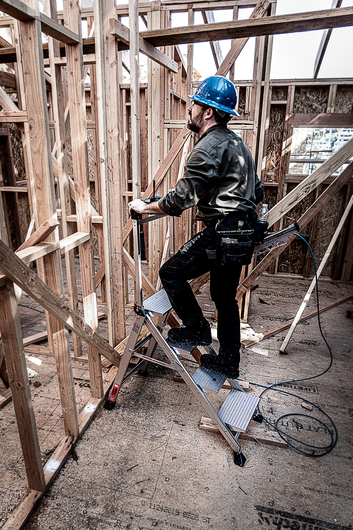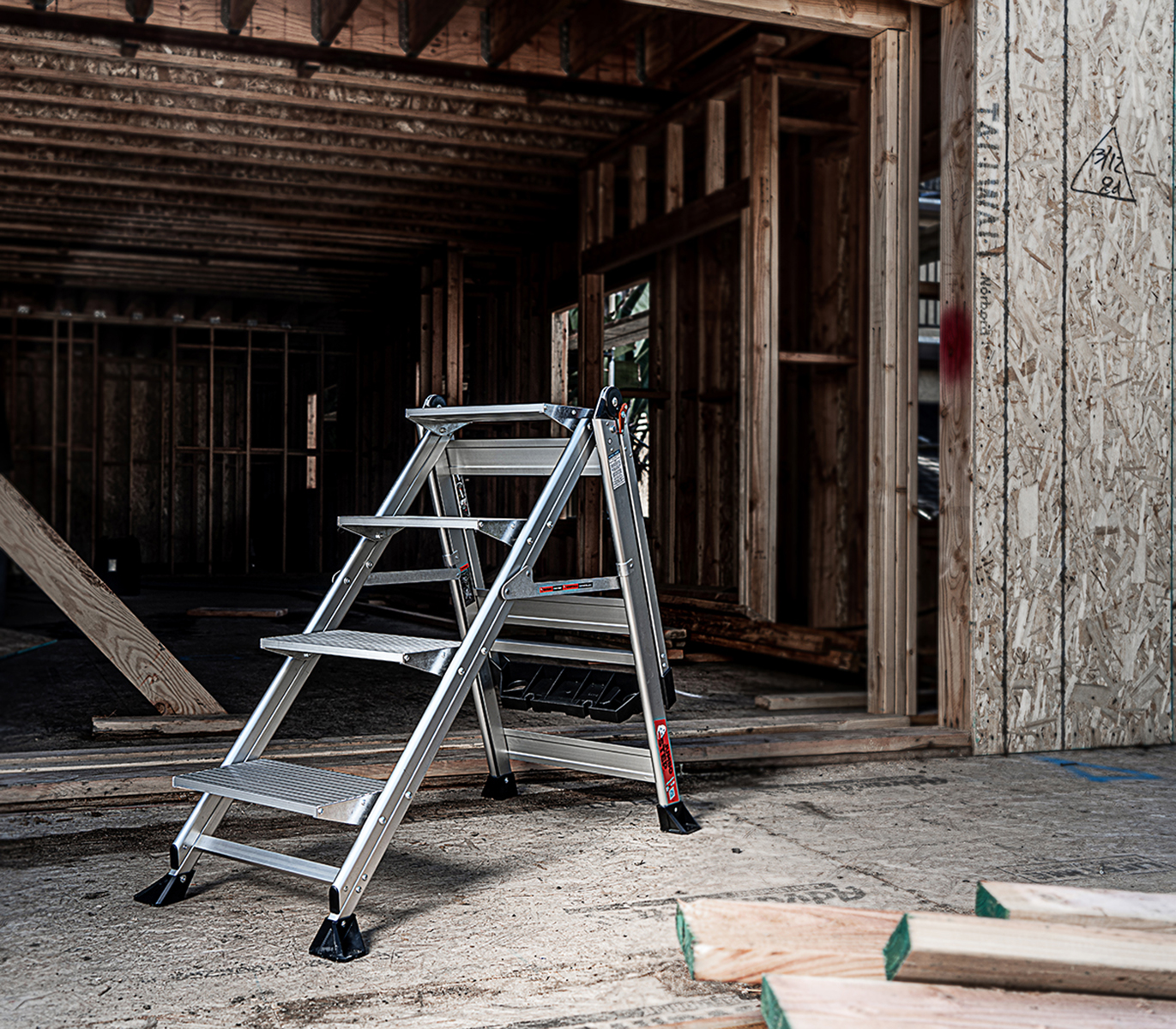 With the Jumbo Step's ultra-wide steps, it feels like walking up a staircase, not a ladder. It is made from lightweight, aircraft grade aluminum and its steps feature a safe, non-slip surface.