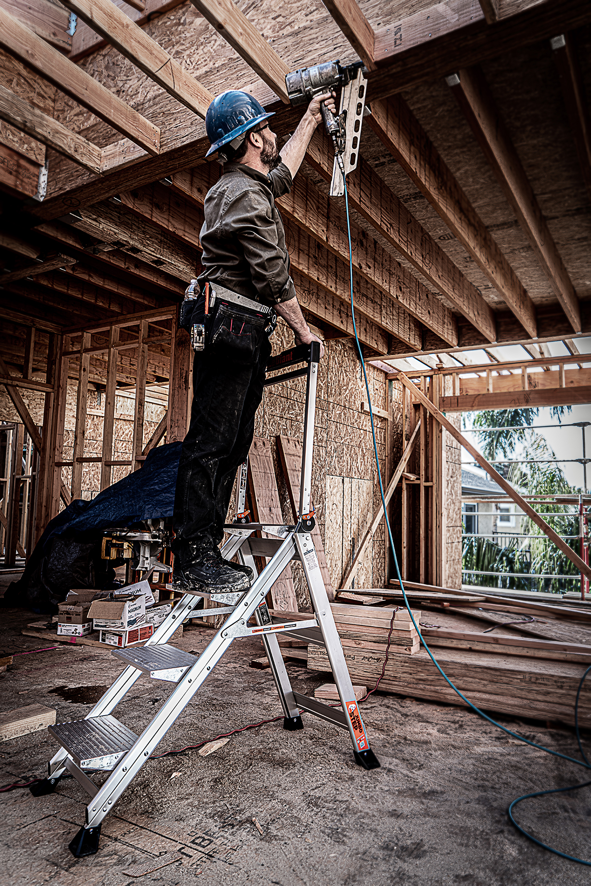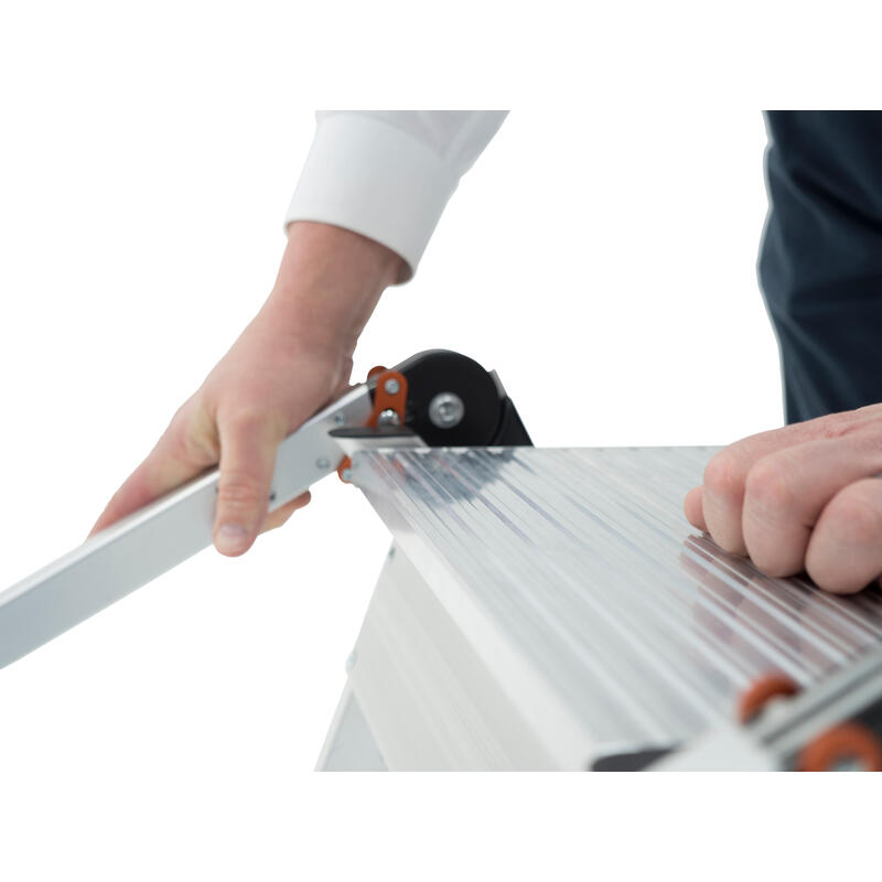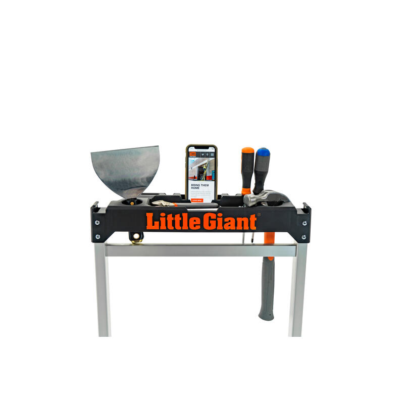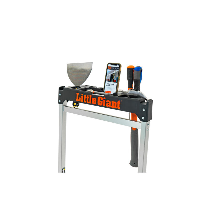 Keep your tools close at hand. The integrated tool tray on the handrail allows you to place your phone, hammer, drill or other materials on the tray for easy access while working.