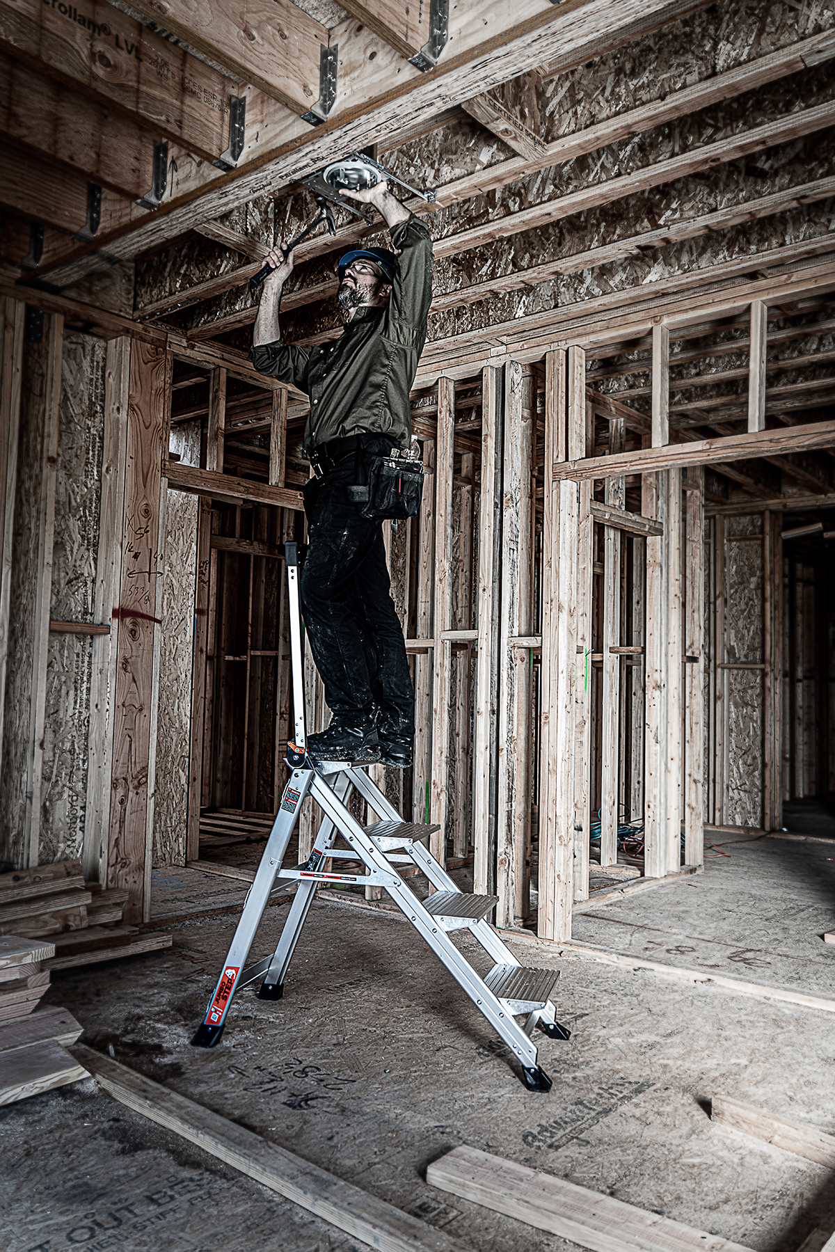 We call it a portable staircase for a reason. The Jumbo Step™ is a lightweight, non-conductive fiberglass stepladder with widened steps that folds into the smallest storage profile across our catalogue. Perfect for truck-bed packing, basement work, and any project that needs a steady standing platform. Available in 2, 3 and 4-step models, this ladder meets or exceeds all OSHA and ANSI standards, and is rated Type IAA to hold 375 lbs.