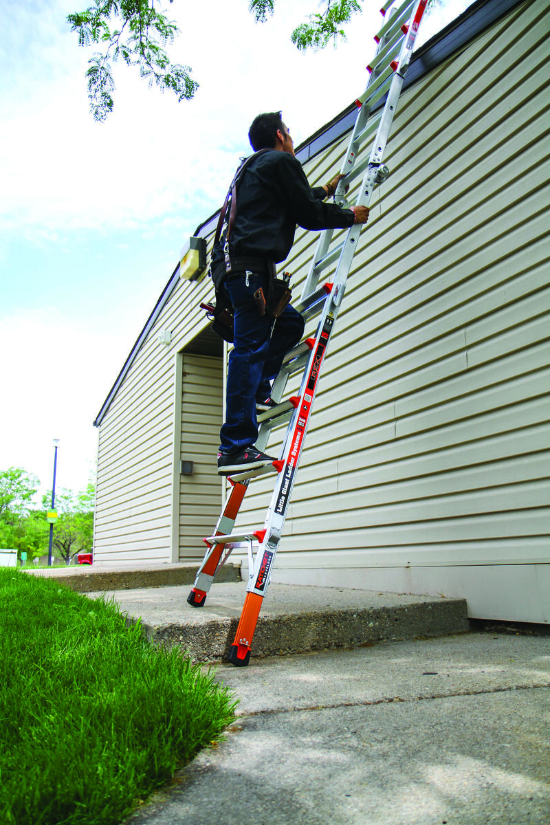 REX, Model 22 - ANSI Type IAA - 375 lb Rated, Aluminum Articulated Extendable Ladder, with 3-position foot, double-angle level and RATCHET Levelers