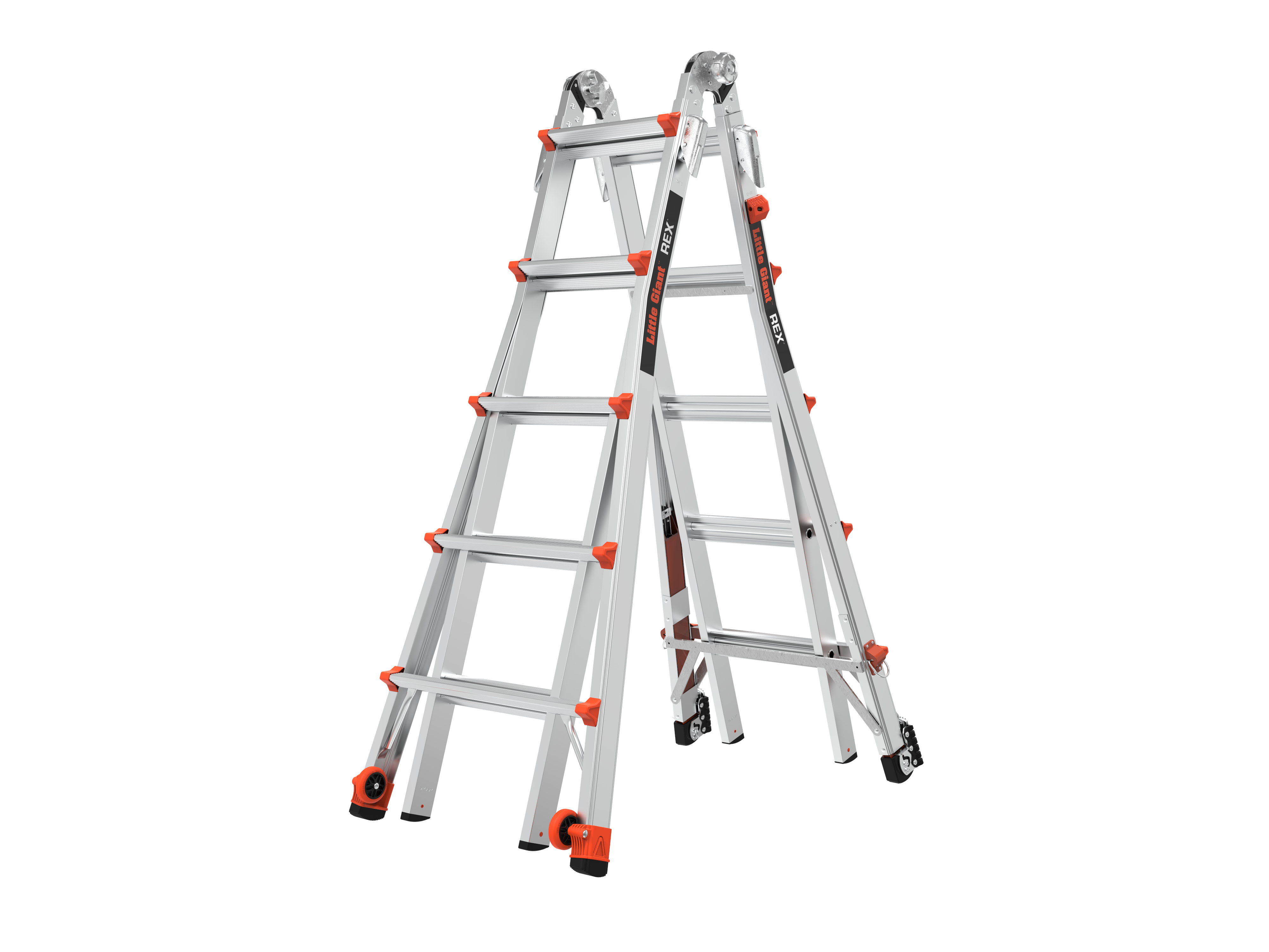 REX, Model 22 - ANSI Type IAA - 375 lb Rated, Aluminum Articulated Extendable Ladder, with 3-position foot, double-angle level and RATCHET Levelers