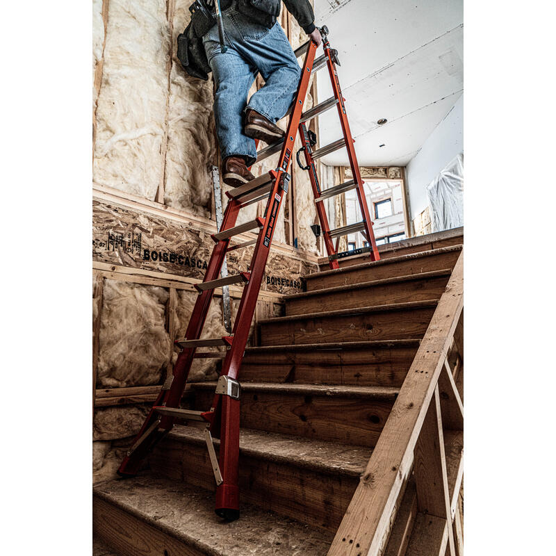 Set up your ladder in a variety of positions to find the right one for your task. The Conquest can be used in stepladder, extension, 90-degree and staircase configurations. With its wide-flared legs, you will feel secure while working, and with the narrow extension and optional V-bar, you can access attics and roofs.