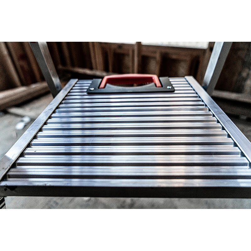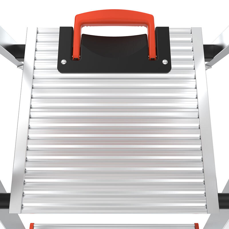 With the extra-large standing platform, you can firmly place your feet on the top step. You will feel more balanced and more comfortable while working atop the Flip-N-Lite.