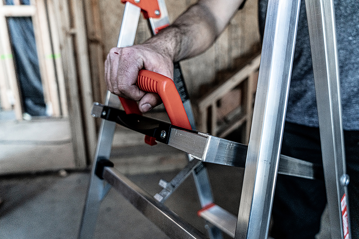 The Flip-N-Lite's easy-release handle makes for a smooth transition from its storage position to its climbing configuration.