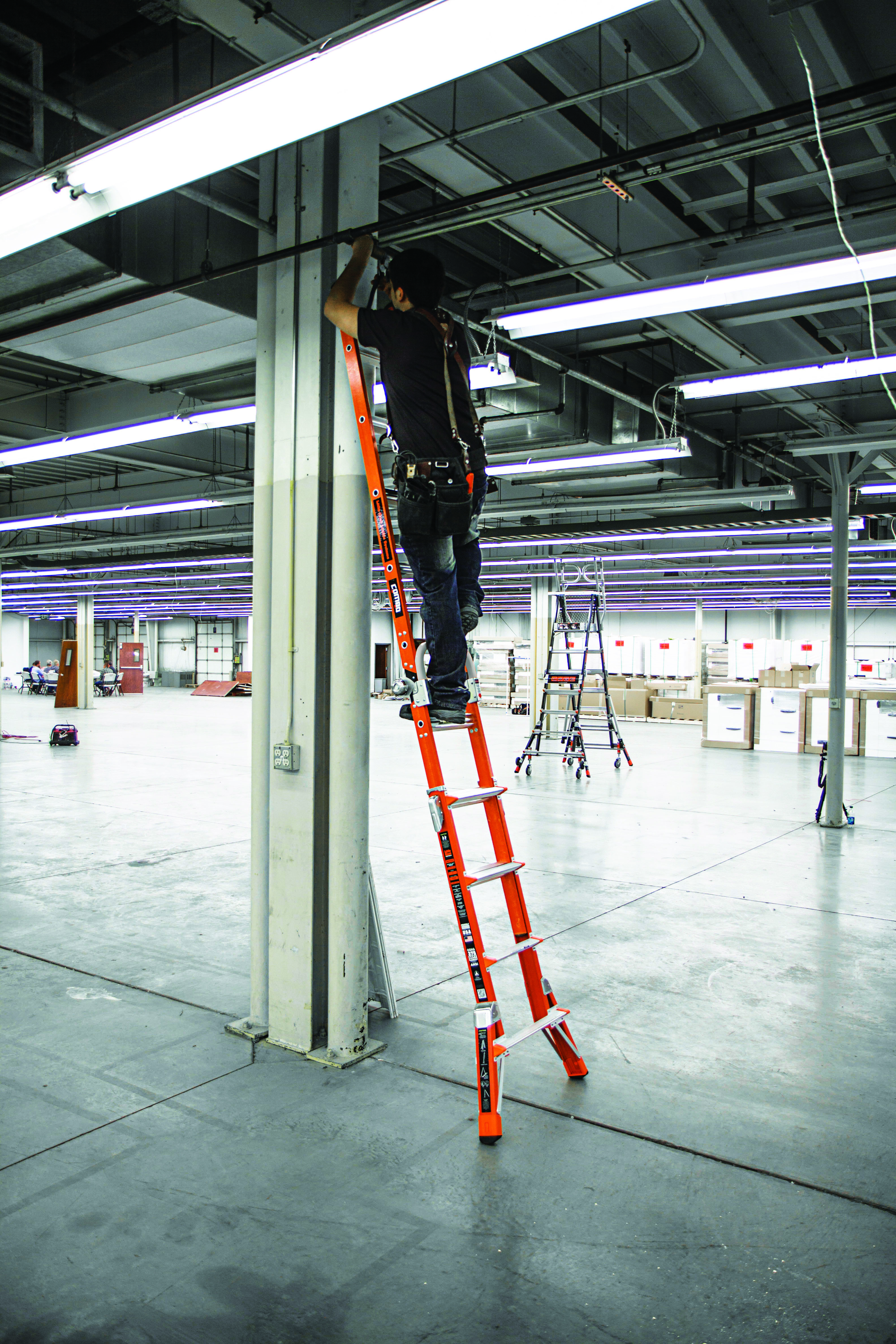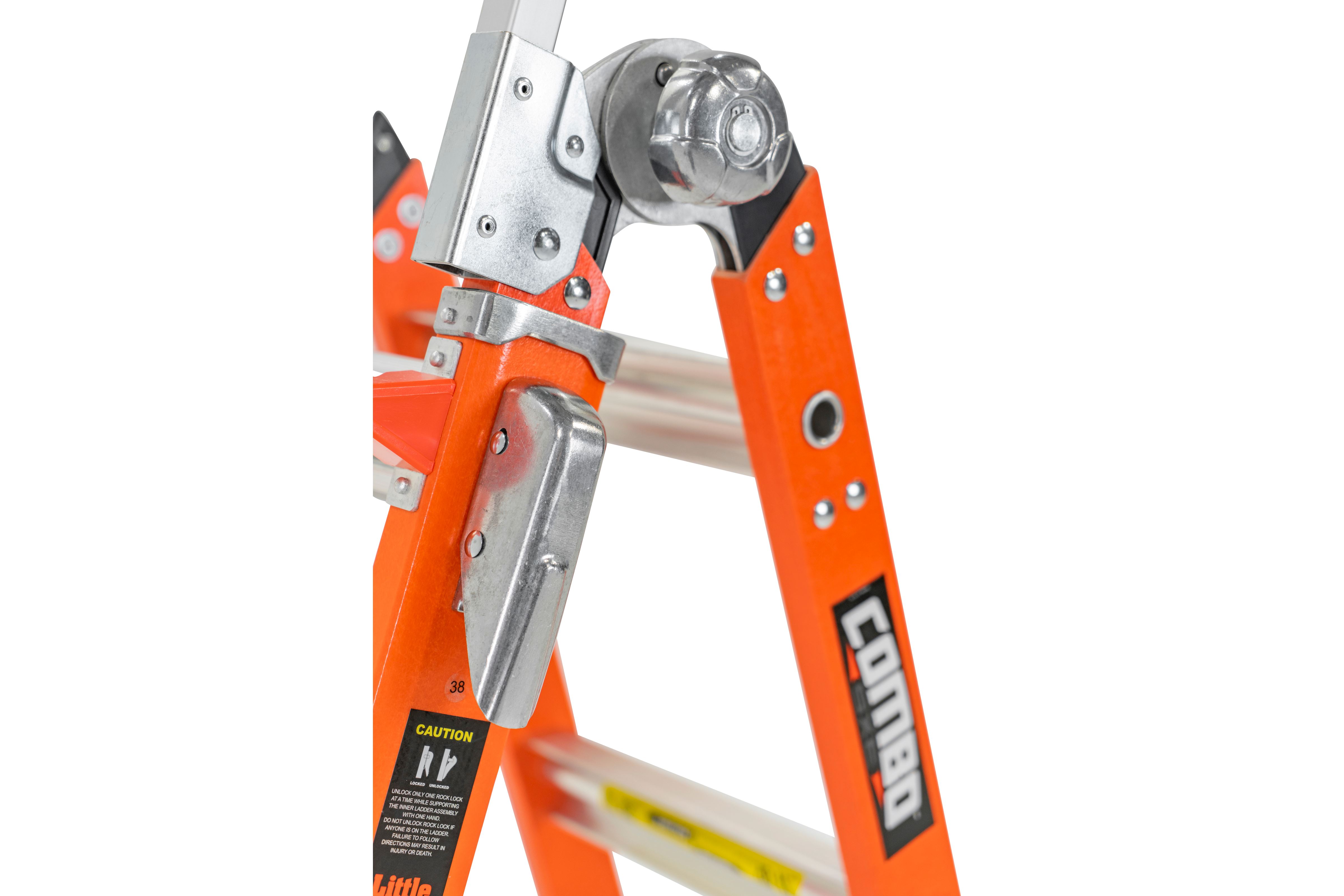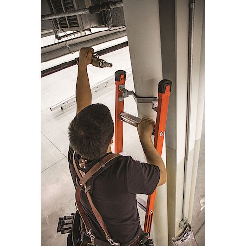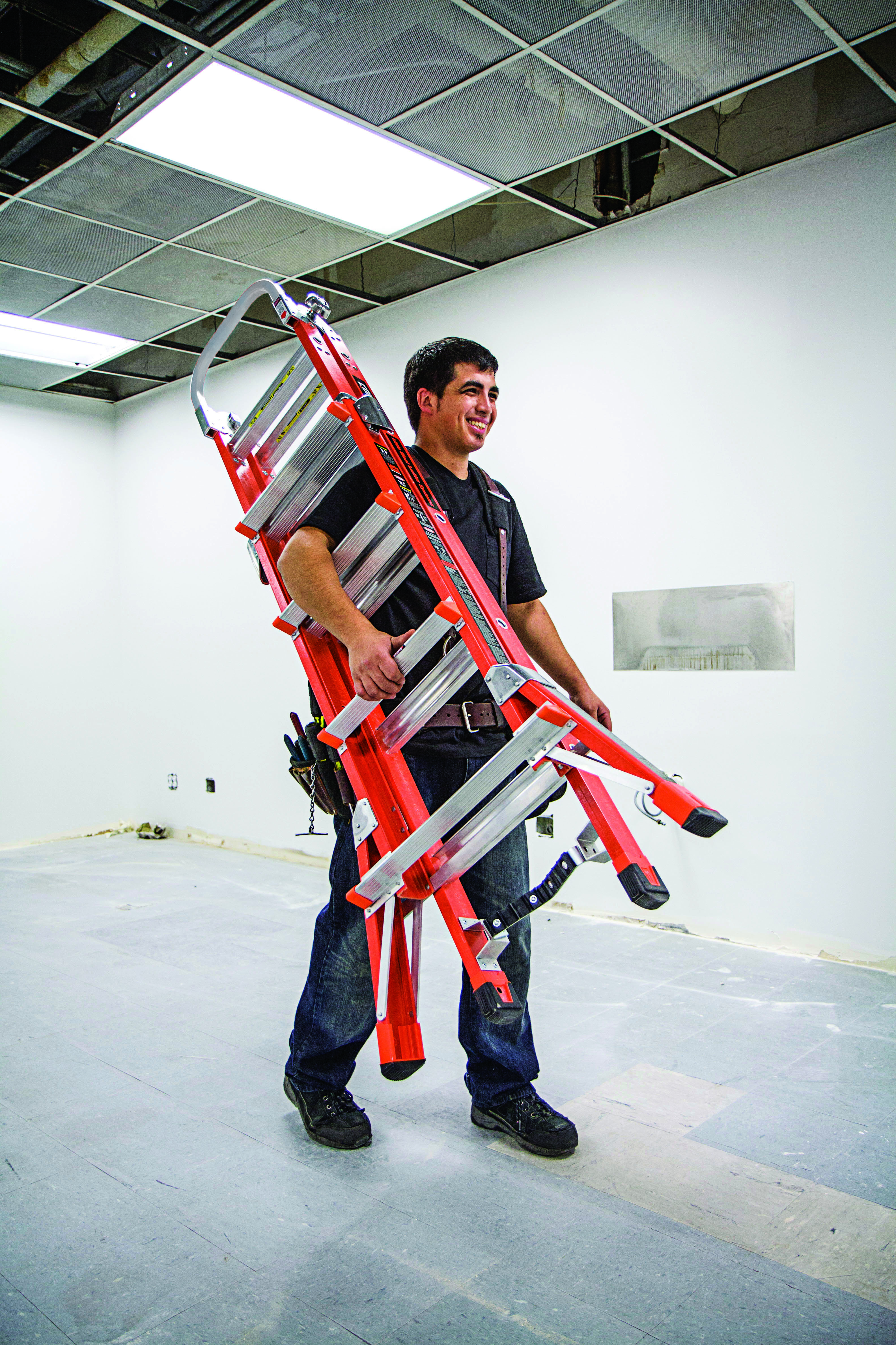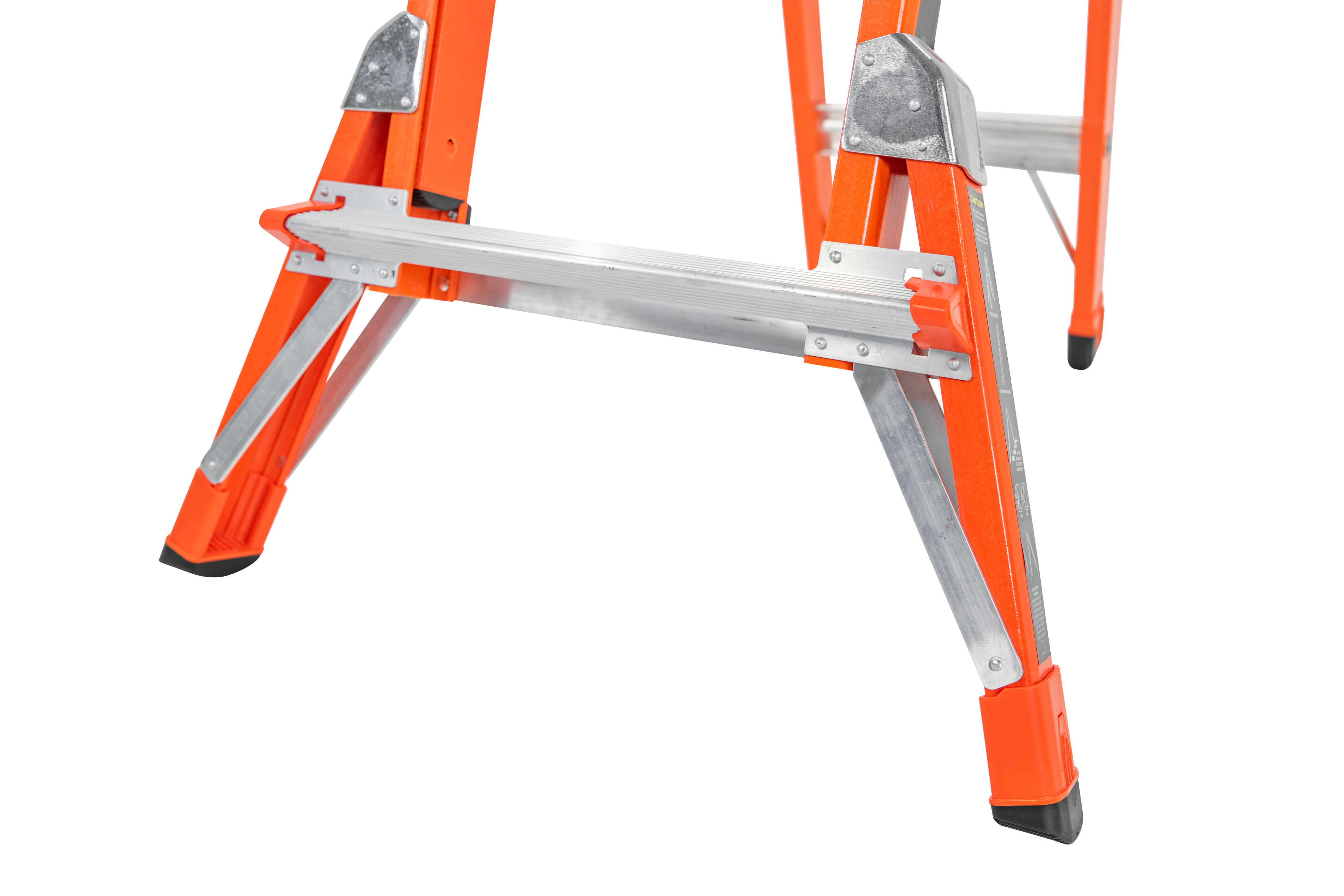 This ladder has a wide-flared base and a narrow, functional extension, so you can reach tight attic access ports while in extension ladder configuration. A safety handrail at the top of the stepladder configuration minimizes sensations of unsteadiness or vertigo while working. Made from lightweight, non-conductive fiberglass, you will be able to get your work done quickly, safely and efficiently.