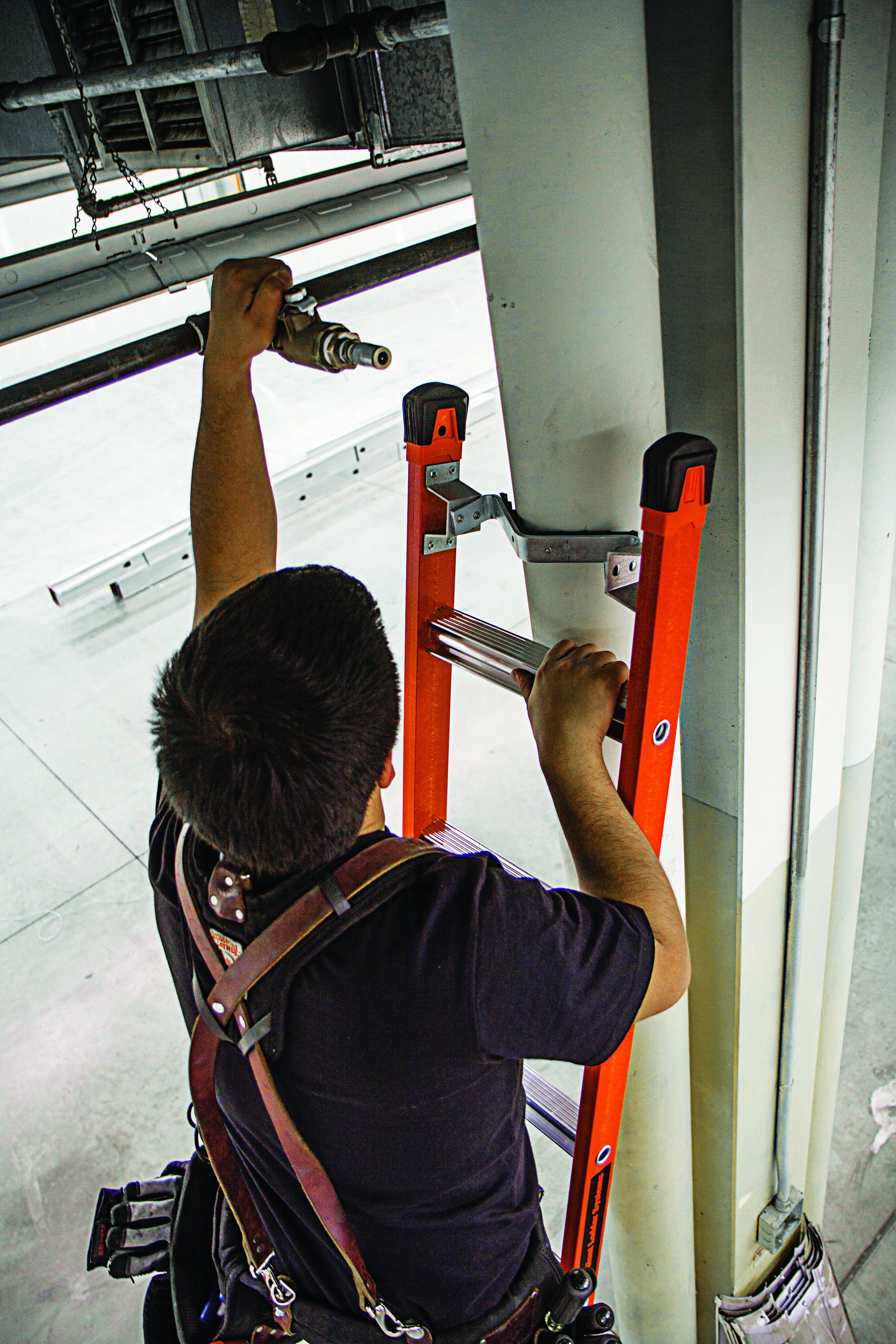 The ComboSXE meets or exceeds all OSHA, ANSI and CSA standards, and is rated Type IAA to hold 375 lbs. The 13’ model comes with V-bar on the extension side of the ladder that allows you to securely lean your extended ladder against an outside corner.