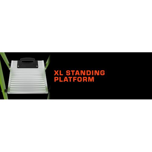 As you climb your MightyLite, you will notice that the 3” rungs are extra-wide with treads to prevent slipping and foot fatigue. Upon reaching the top of the ladder, you can stand on the 165 square inch standing platform. This platform reduces dangerous falls and is comfortable to stand on for extended periods while working