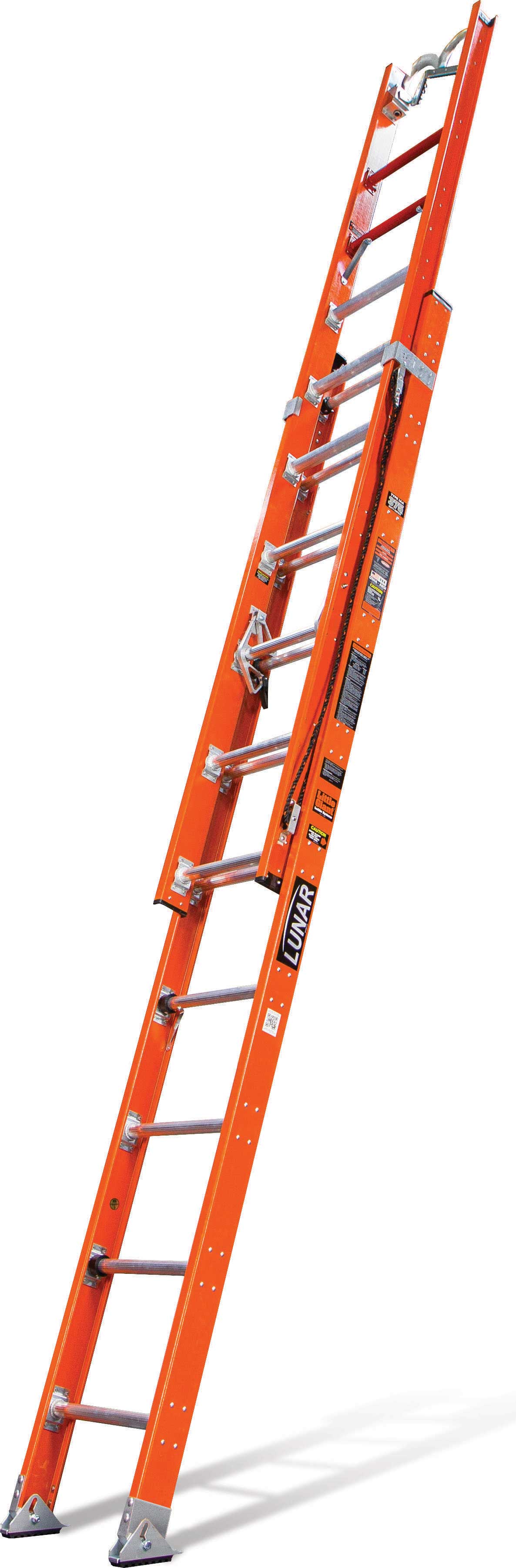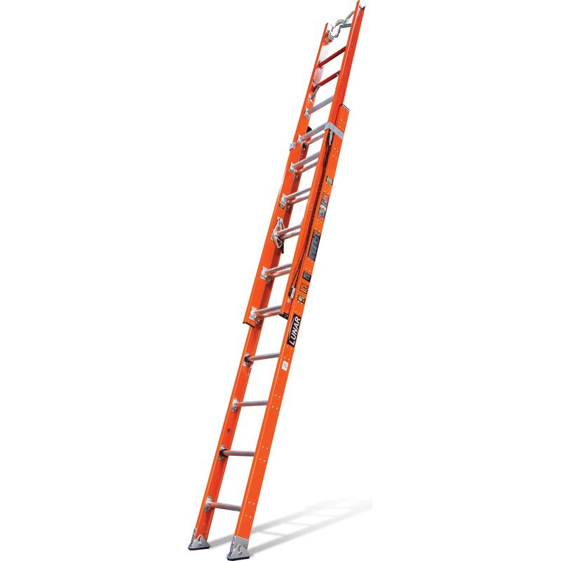 The Lunar extension ladder with Litewave™ technology is the lightest non-conductive fiberglass extension ladder in the world. The Lunar is rated for extra heavy duty use (Type IA – 300 lbs) and is available in 20, 24, and 28-foot models. The Lunar is the only extension ladder in the world constructed with Little Giant’s unique Litewave black resin-fiberglass composite rail technology, resulting in an industrial-strength ladder that weighs as much as 30% less than ordinary extension ladders. Also, Lunar’s exclusive black resin-fiberglass rails resist fading from UV damage longer than any comparable materials.