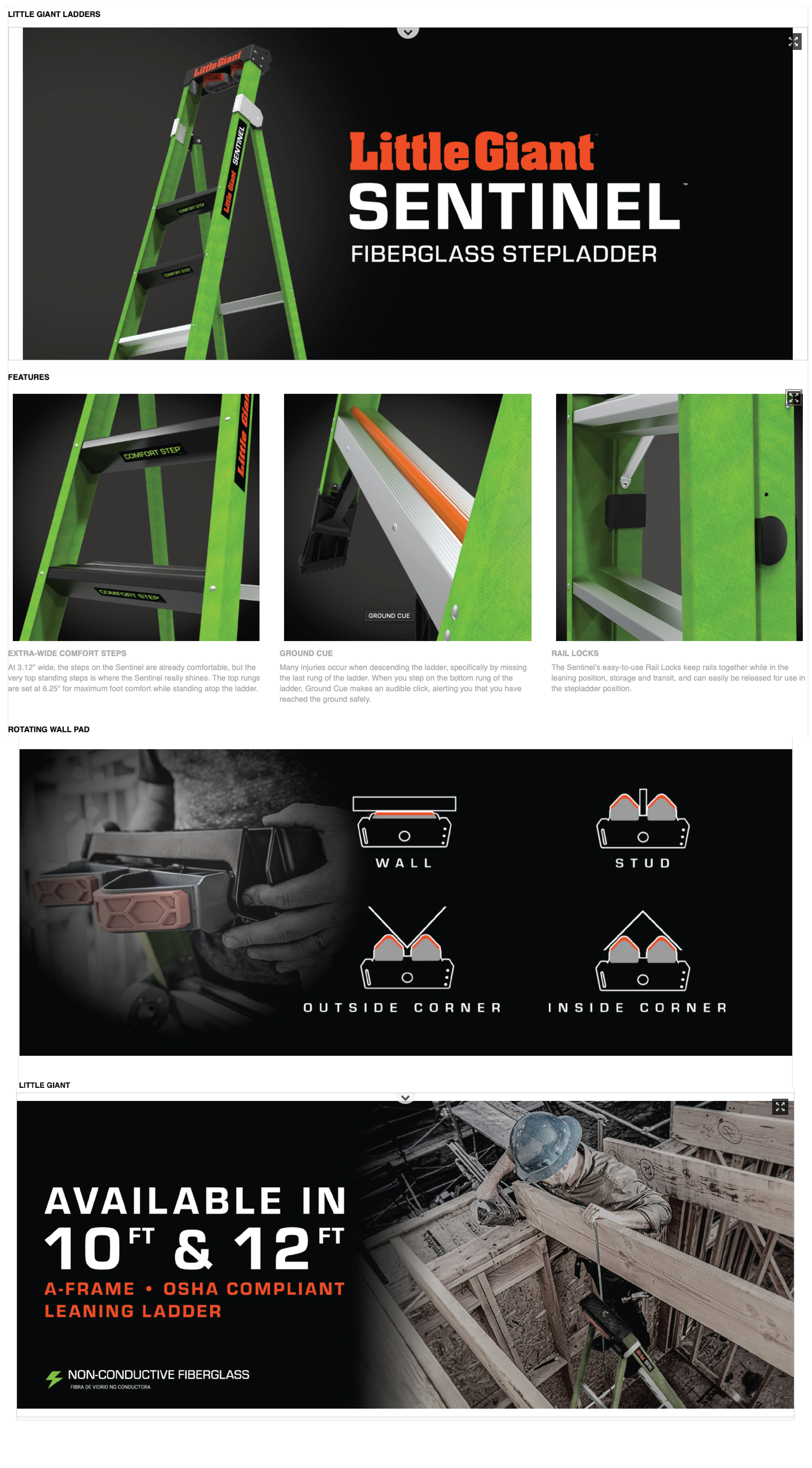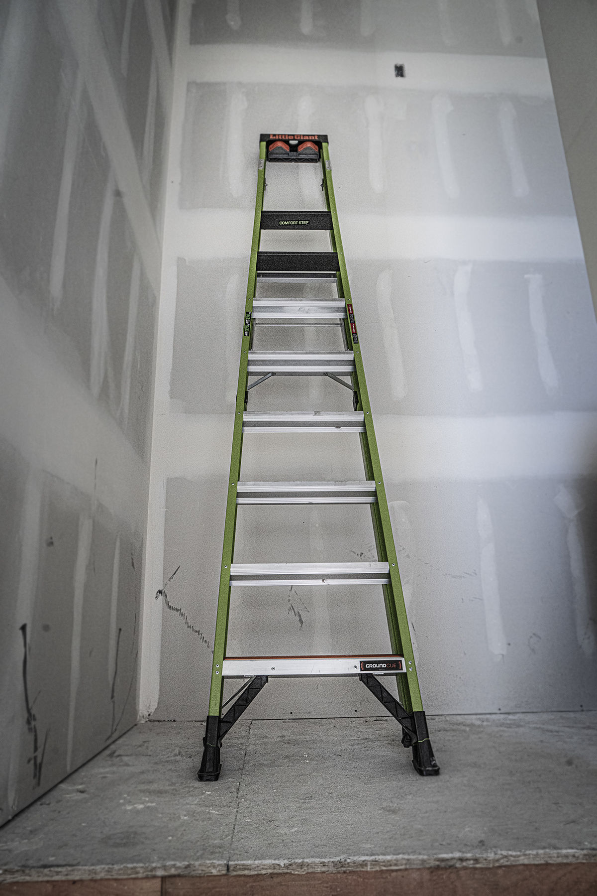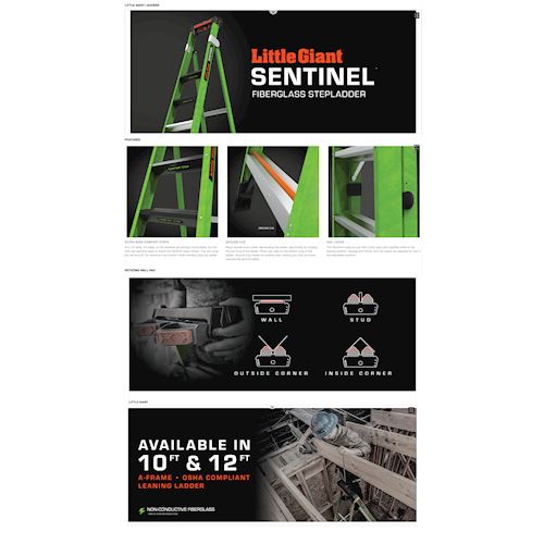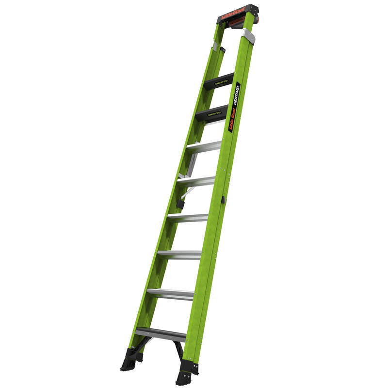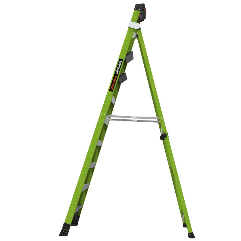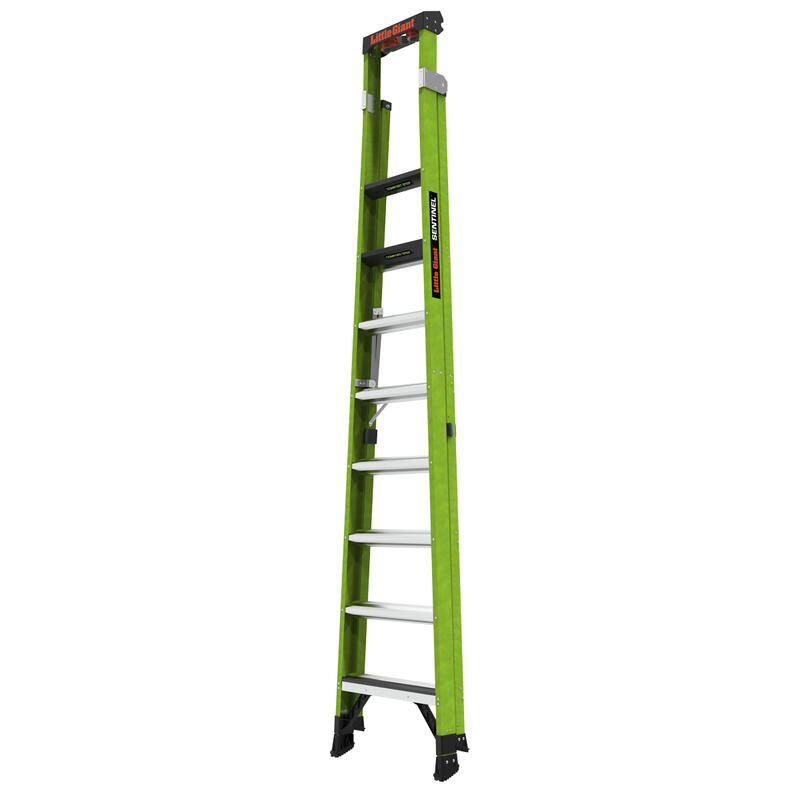 SENTINEL, 10' Model - ANSI Type IAA - 375 lb Rated, Fiberglass Stepladder / Leaning Ladder with Rotating Wall Pad Accessory and GROUND CUE - Retail Packaging