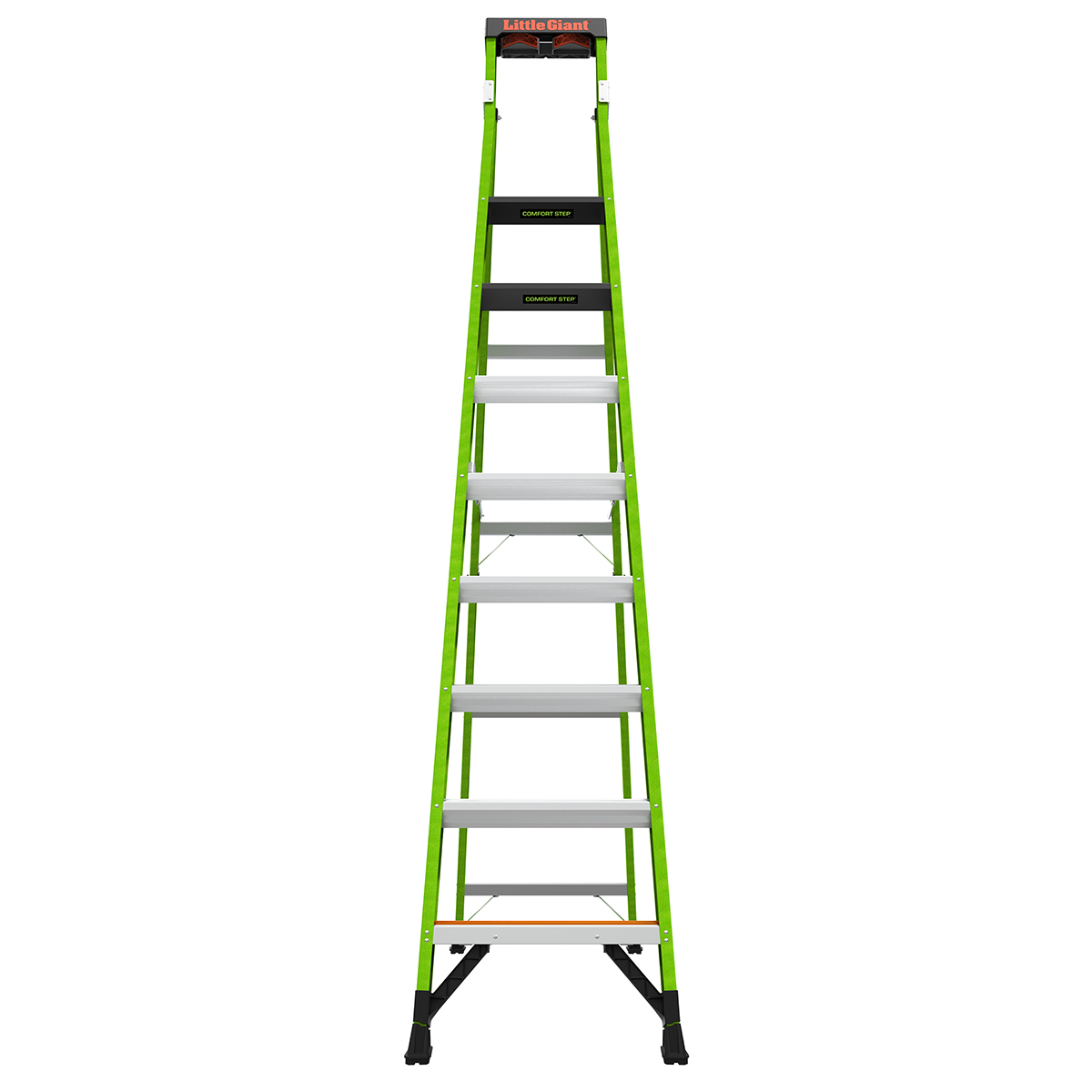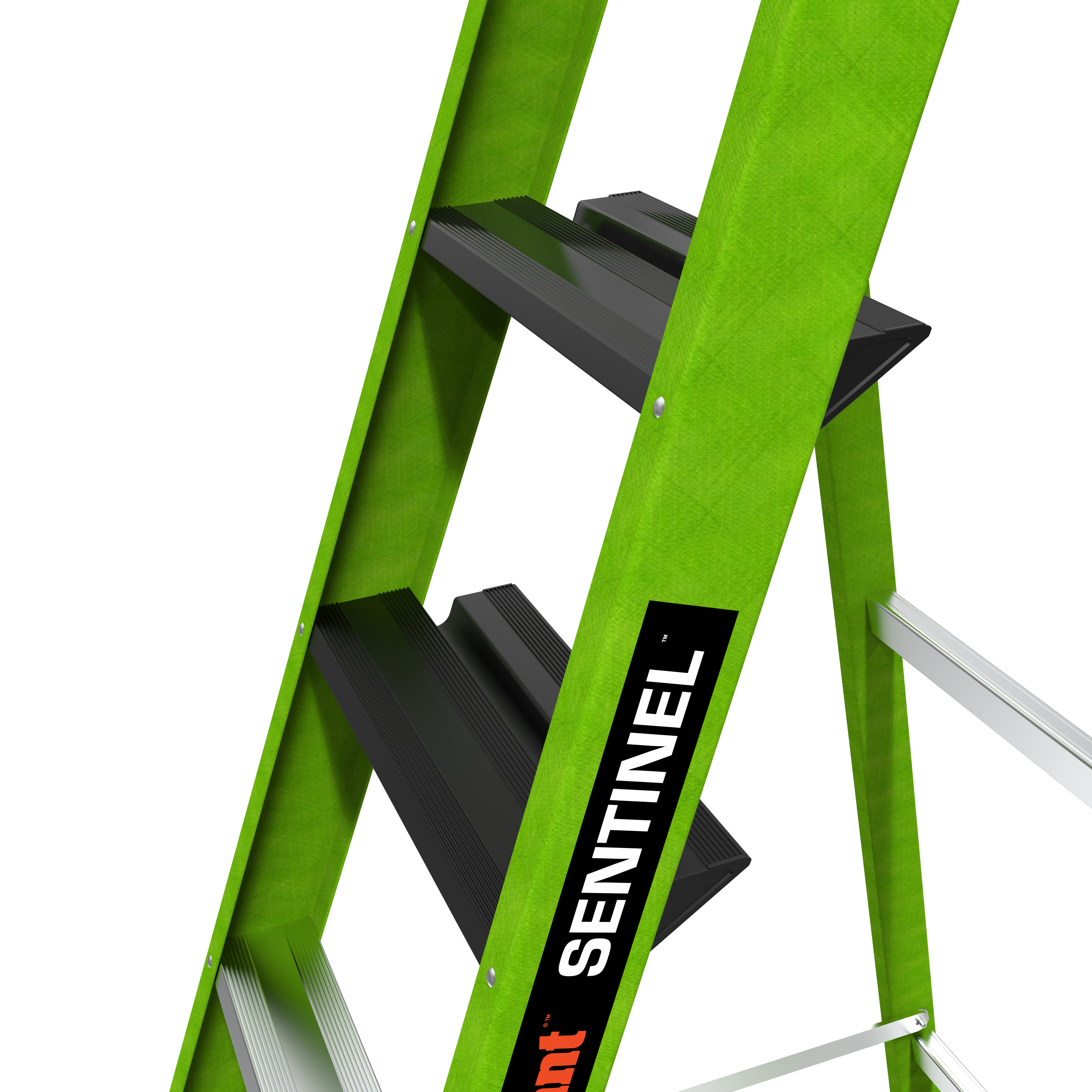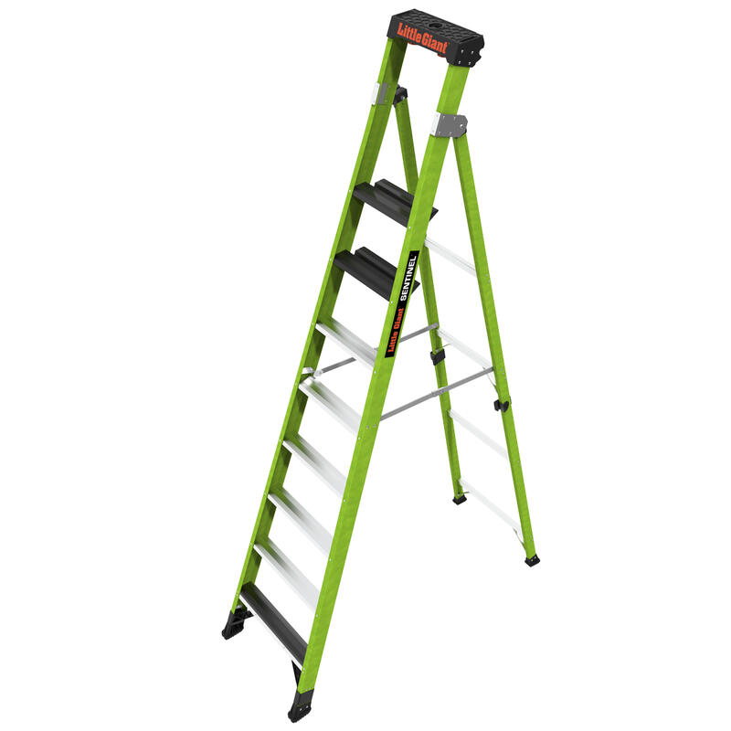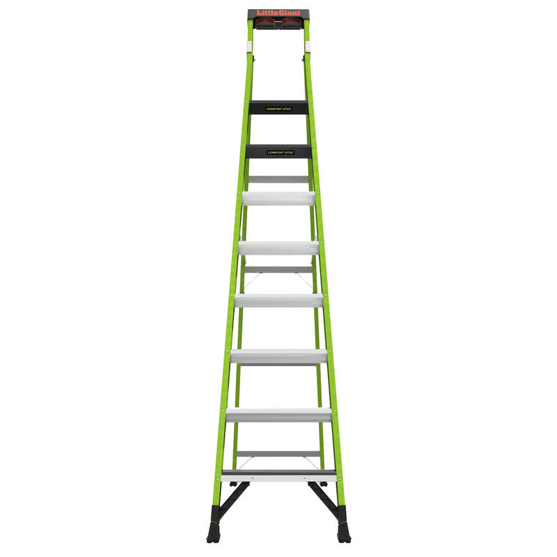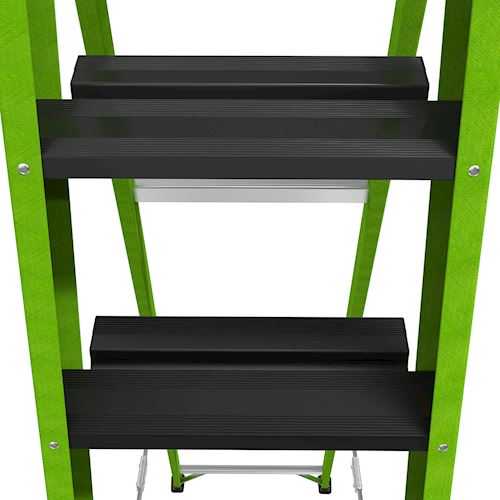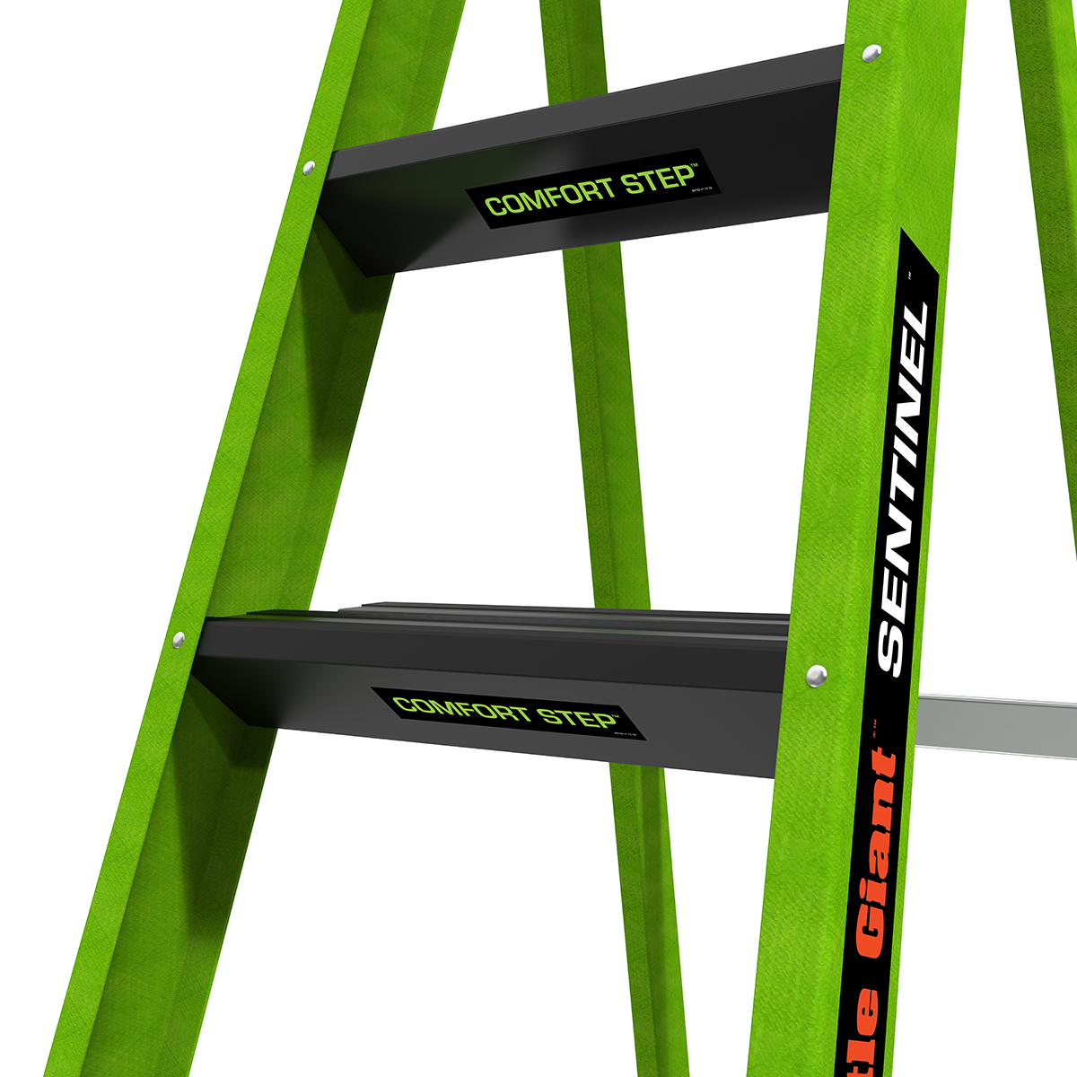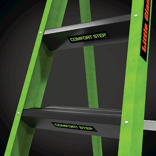 At 3.12" wide, the steps on the Sentinel are already comfortable, but the very top standing steps is where the Sentinel really shines. The top rungs is set at 6.25" for maximum foot comfort while standing atop the ladder.