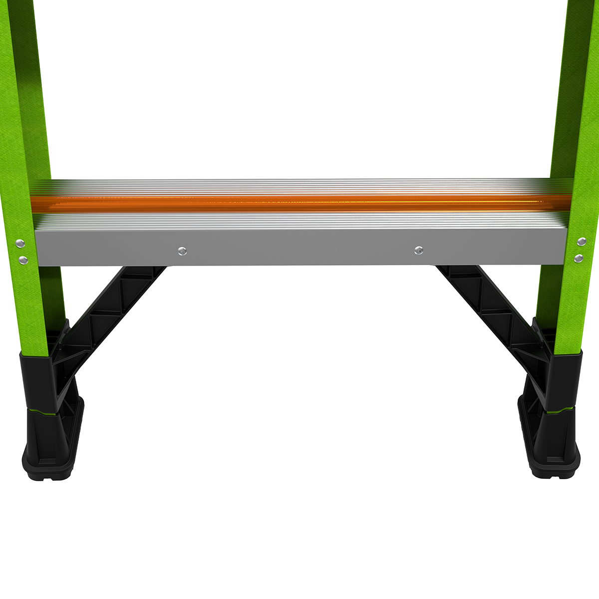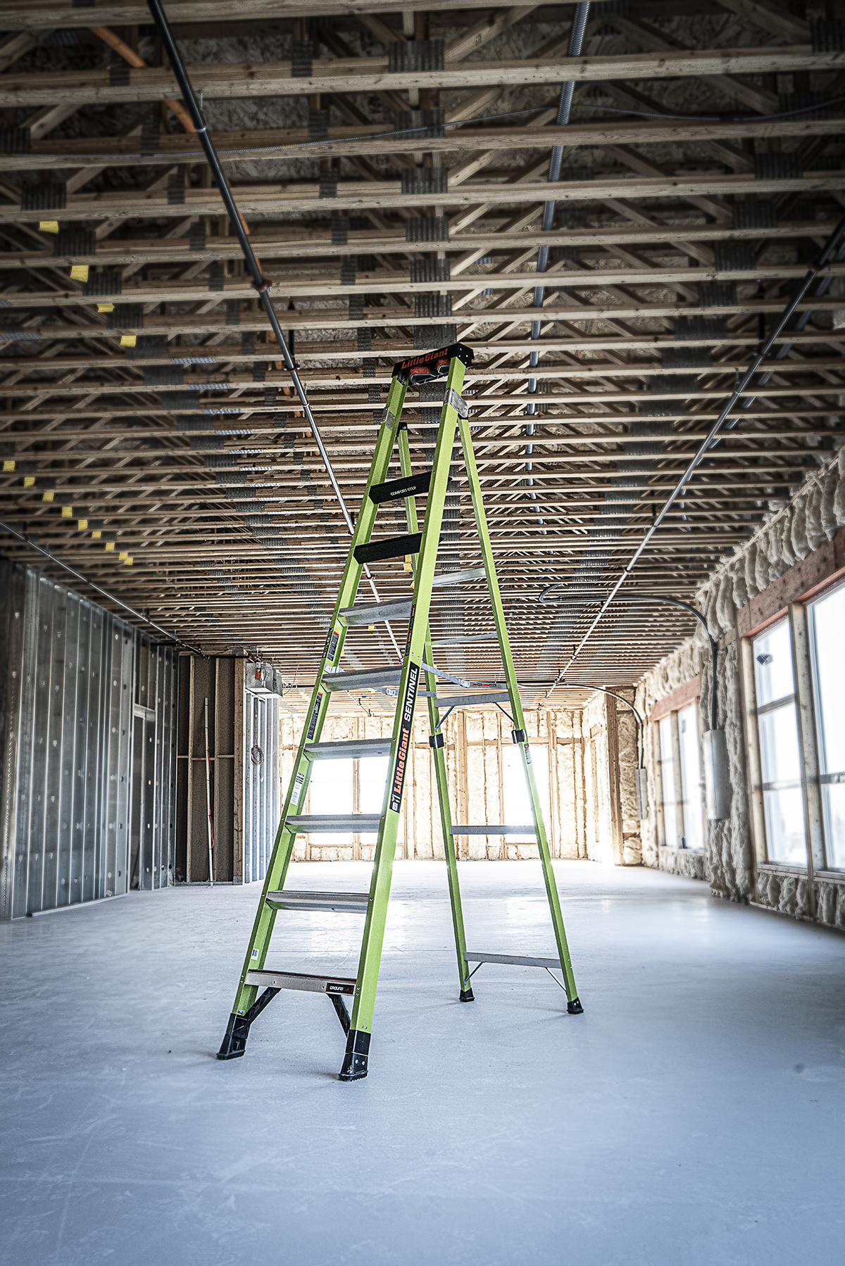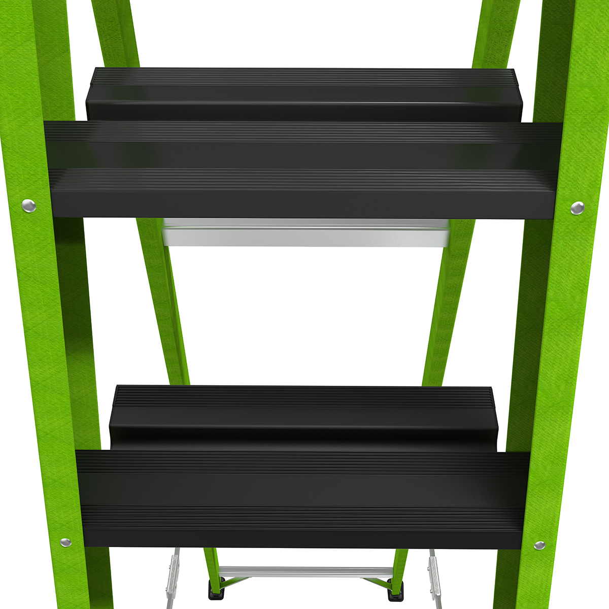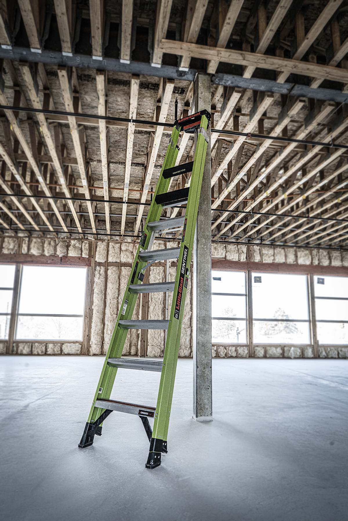 At 3.12" wide, the steps on the Sentinel are already comfortable, but the very top standing steps is where the Sentinel really shines. The top rungs is set at 6.25" for maximum foot comfort while standing atop the ladder.