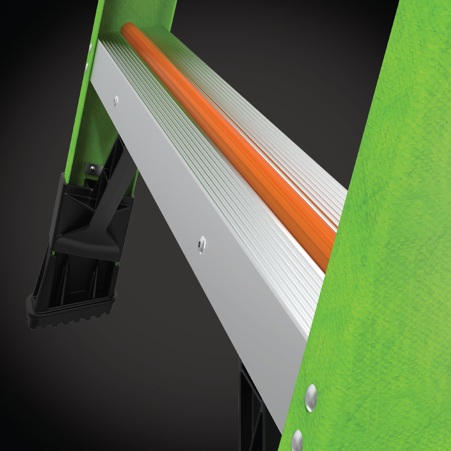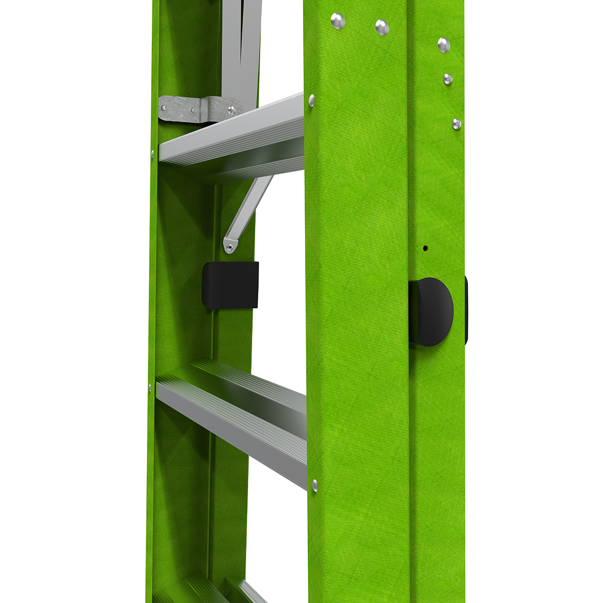Many injuries occur when descending the ladder, specifically by missing the last rung of the ladder. When you step on the bottom rung of the ladder, Ground Cue makes an audible click, alerting you that you have reached the bottom step safely.