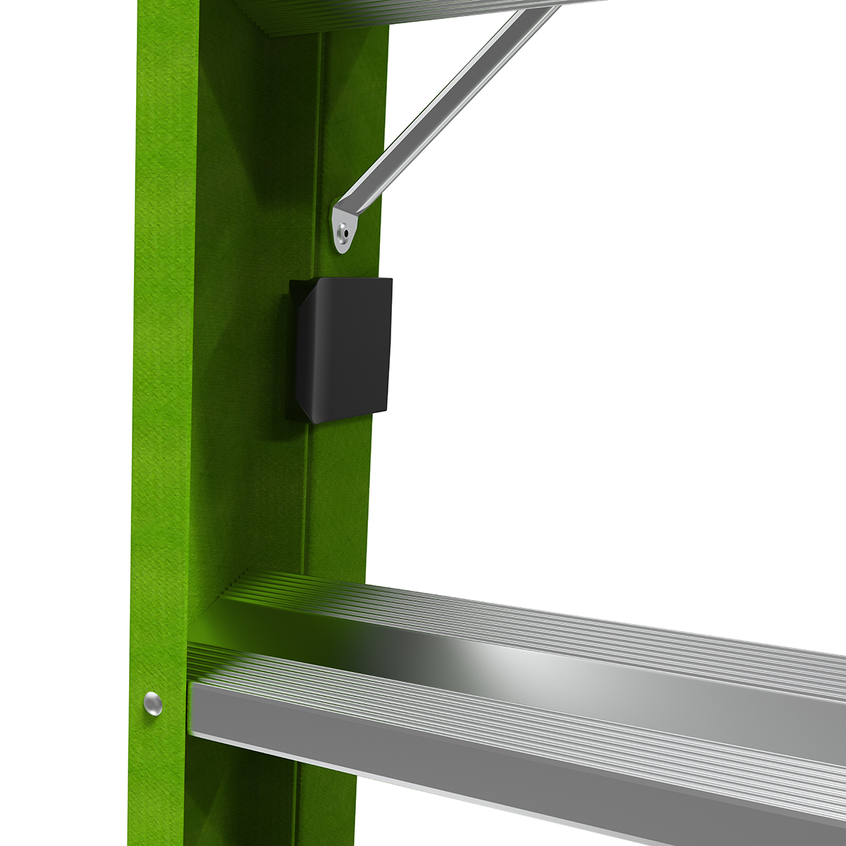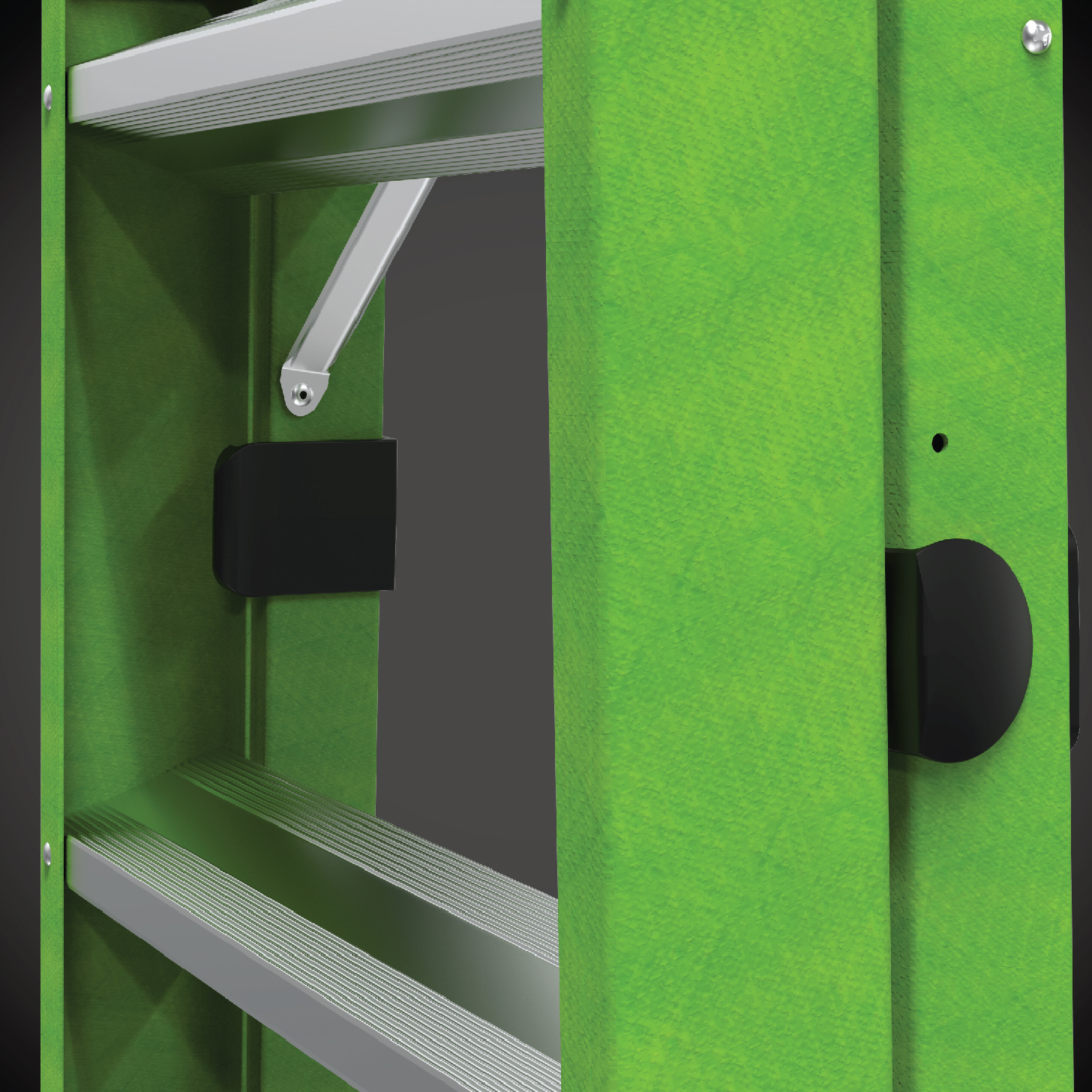The Sentinel's easy-to-use Rail Locks keep rails together while in the leaning position, storage and transit, and can easily be released for use in the stepladder position.