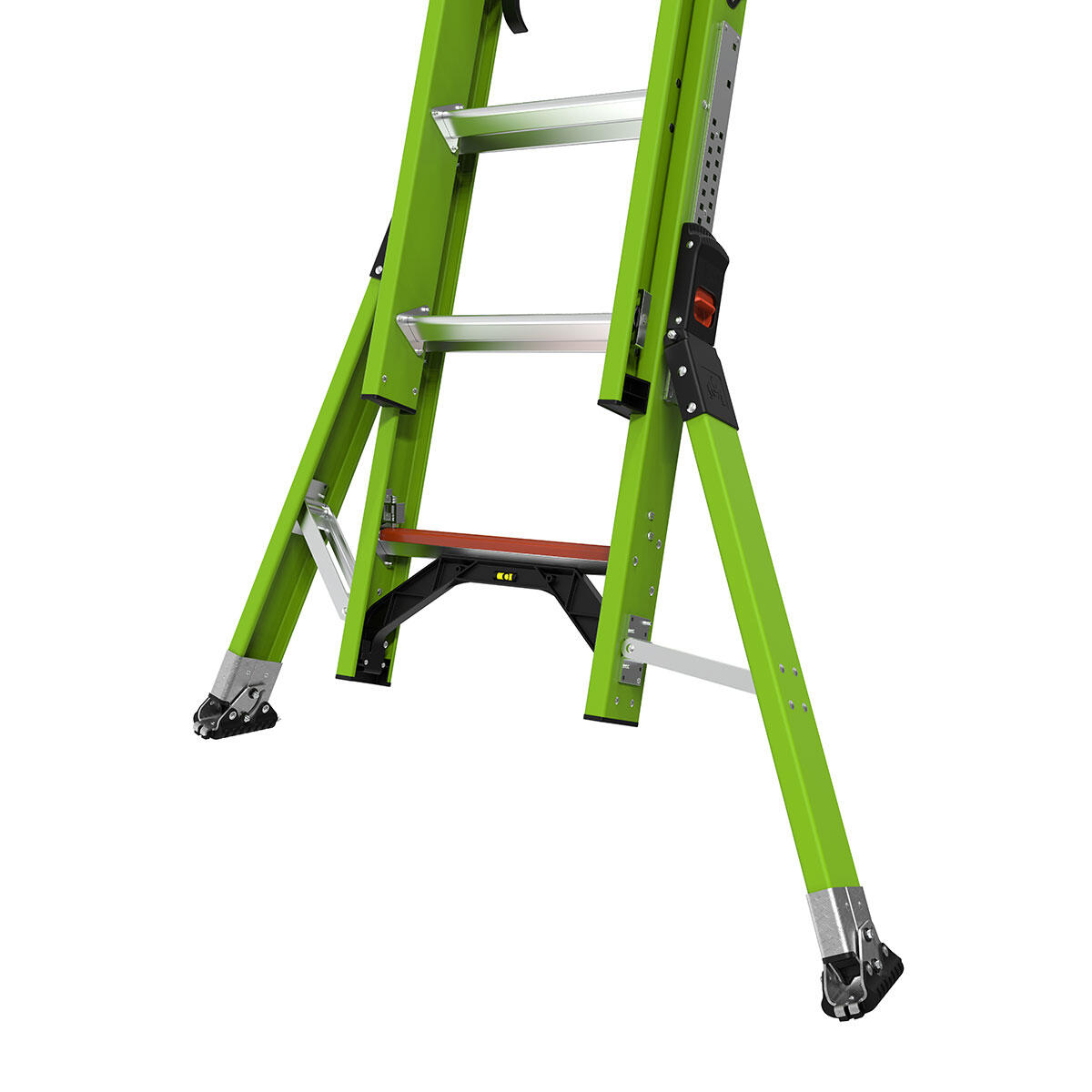 The benefits of this ladder are clear. In addition to the benefits listed above, the SumoStance increases safety with its patent-pending Hi-Viz Green color. This color of fiberglass is easy to see, which helps prevent accidents associated with walking or driving into a ladder that is in-use.