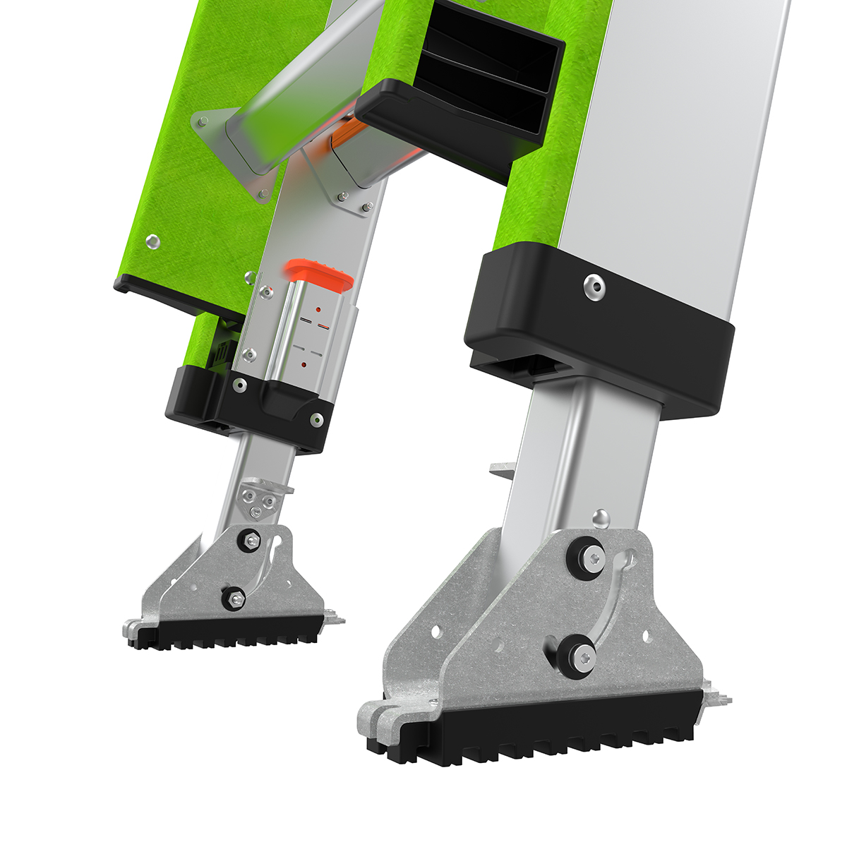 Having a ladder's level off by just 1 inch at the bottom causes a 9-inch lean at the top of a 19-foot ladder. The ladder's integrated bubble level helps set up for safer climbing.