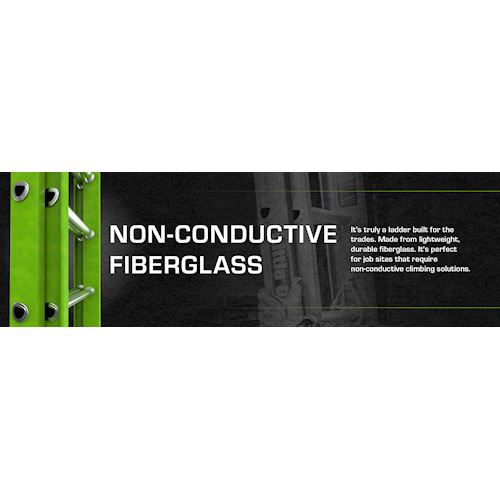 It's truly a ladder built for the trades. Made from lightweight, durable fiberglass, you can confidently work around electricity without fear of conductivity.