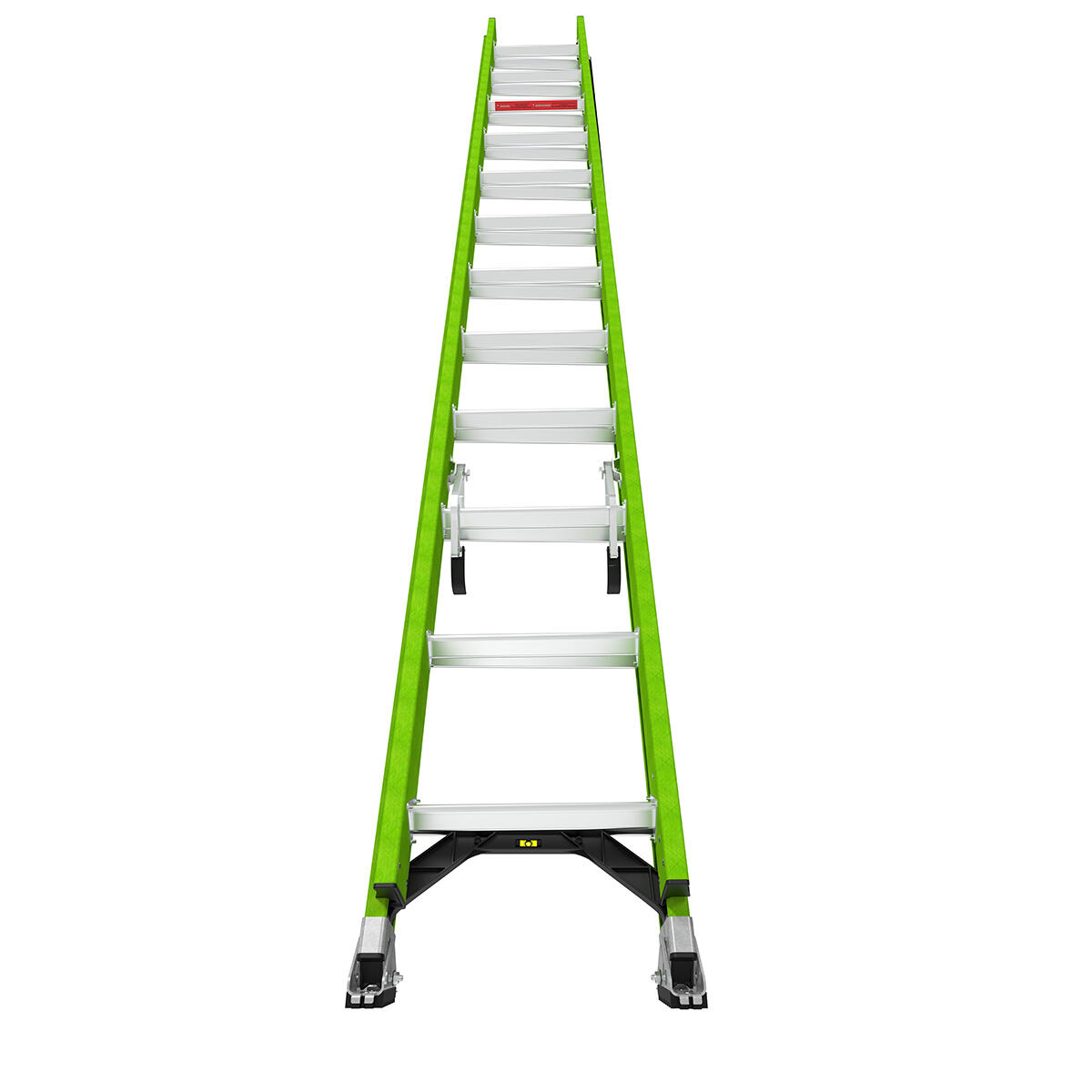 Having a ladder's level off by just 1 inch at the bottom causes a 9-inch lean at the top of a 19-foot ladder. The ladder's integrated bubble level helps set up for safer climbing.