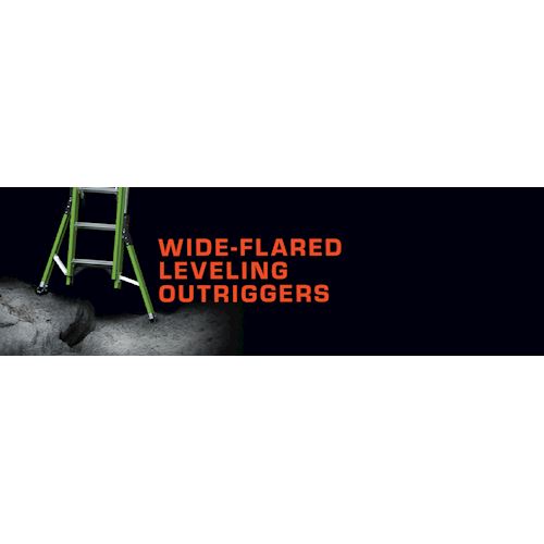 The SumoStance utilizes wide-flared leg levelers to increase the stability of your ladder. The wide legs nearly double the ladder’s width, giving your ladder added side-tip stability. Work on any terrain, adjusting the ladder’s legs as needed, so you can confidently tackle any project.