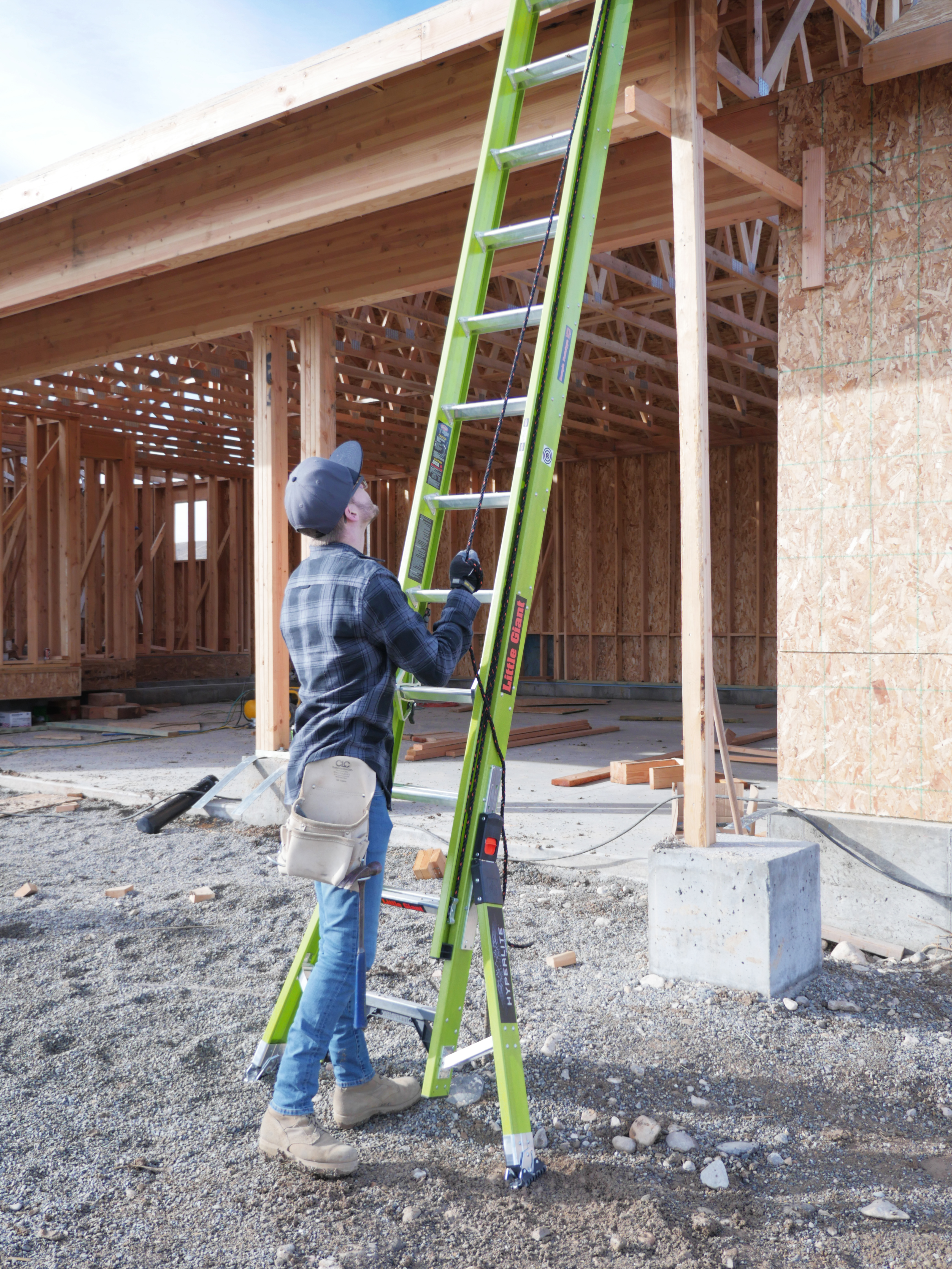 The benefits of this ladder are clear. In addition to the benefits listed above, the SumoStance increases safety with its patent-pending Hi-Viz Green color. This color of fiberglass is easy to see, which helps prevent accidents associated with walking or driving into a ladder that is in-use.